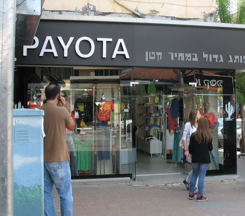 חובבי ציון פינת מוהליבר, צד אחד - payota חנות בגדים. לא הכי זולה שבעולם, שווה להכנס בסוף עונה.